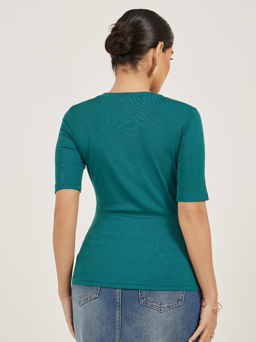 Size shown on Model: S, Product Type: Knit Tops, Pattern: Plain, Lifestyle: Daytime, Neck: Round Neck, Sleeve Length : Short Sleeves, Material: Poly Blend, Fit: Fitted, Care Instructions: Wash according to instructions on care label, Length: Regular, Designed with a refined and modern stylish look. Profound material offers immense comfort