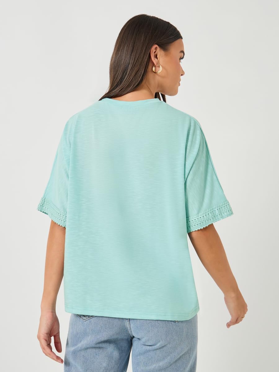 Size shown on Model: S, Product Type: Regular T-Shirt, Pattern: Plain, Lifestyle: Daytime, Neck: Round Neck, Sleeve Length : Short Sleeves, Material: Poly Blend, Fit: Boxy, Care Instructions: Wash according to instructions on care label, Length: Regular, Designed with a refined and modern stylish look. Profound material offers immense comfort