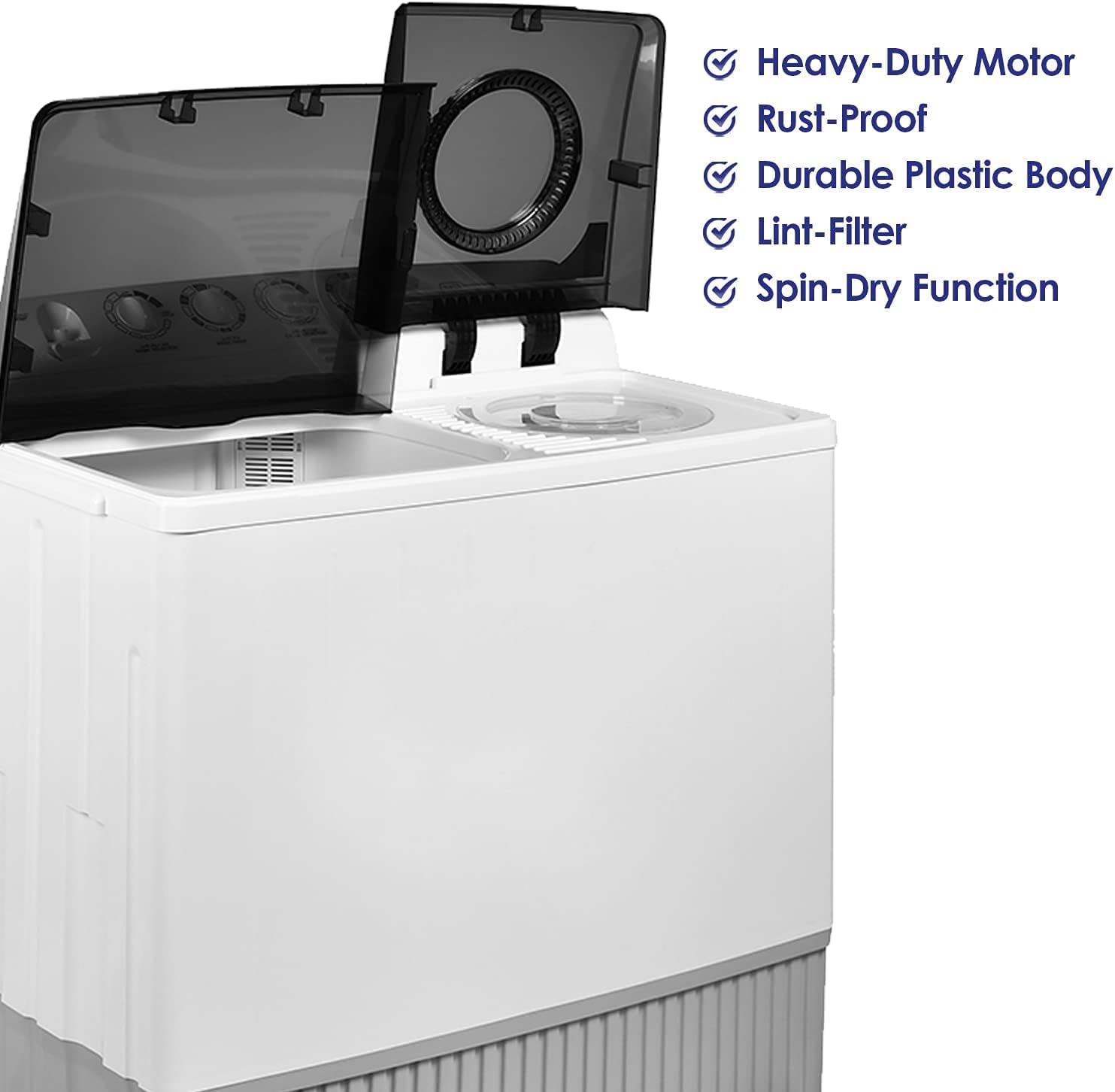 {Twin-Tub} – Wash and spin-dry your clothes and textiles simultaneously thanks to the spacious twin-tub top-loader washing machine. It features large washing capacity and spin capacity combined with a very efficient spin-cycle and a reduced drying time!