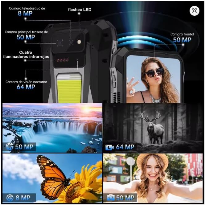 Main Rear Camera: 50MP Camara, 8 MP Telephoto, 64MPNight vision Front Camera: 50MP Rear-mounted Flash LED: 1.5A max, dual color temperature, night vision with four infrared fill lights Dual Speaker