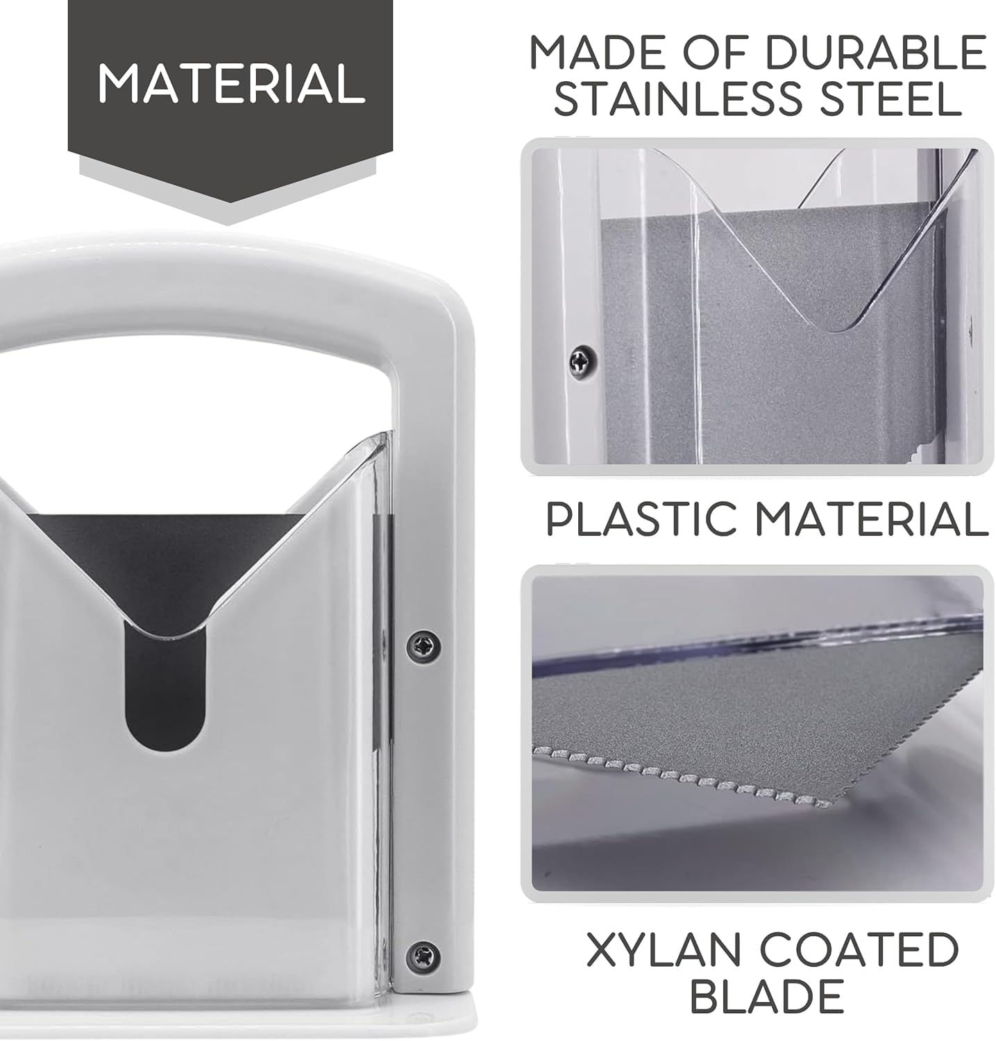 🥯【Compact Size】:The size of the bagel slicer guillotine is 6.8″L x 3.7″W x 8.8″H. This bagel saber is made of quality plastic and stainless steel. The bagel knife is comfortable to use due to its ergonomic shape and prevents accidental cuts while working with it.