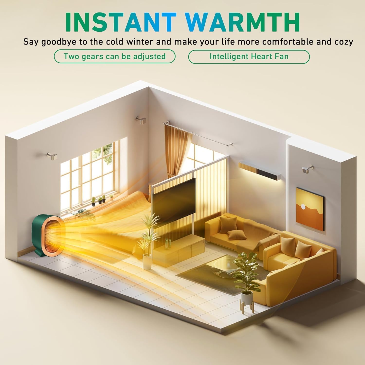 🔥【1200W Fast Heating】 This fan heater uses advanced ceramic heating technology and is equipped with PTC heating sheets and aluminum sheets. Compared with traditional electric heaters, it has the characteristics of long-lasting constant temperature output, more even heat dissipation, and faster heating speed. 3 seconds It heats up quickly and emits surprisingly powerful heat, effectively helping you resist the cold in winter.