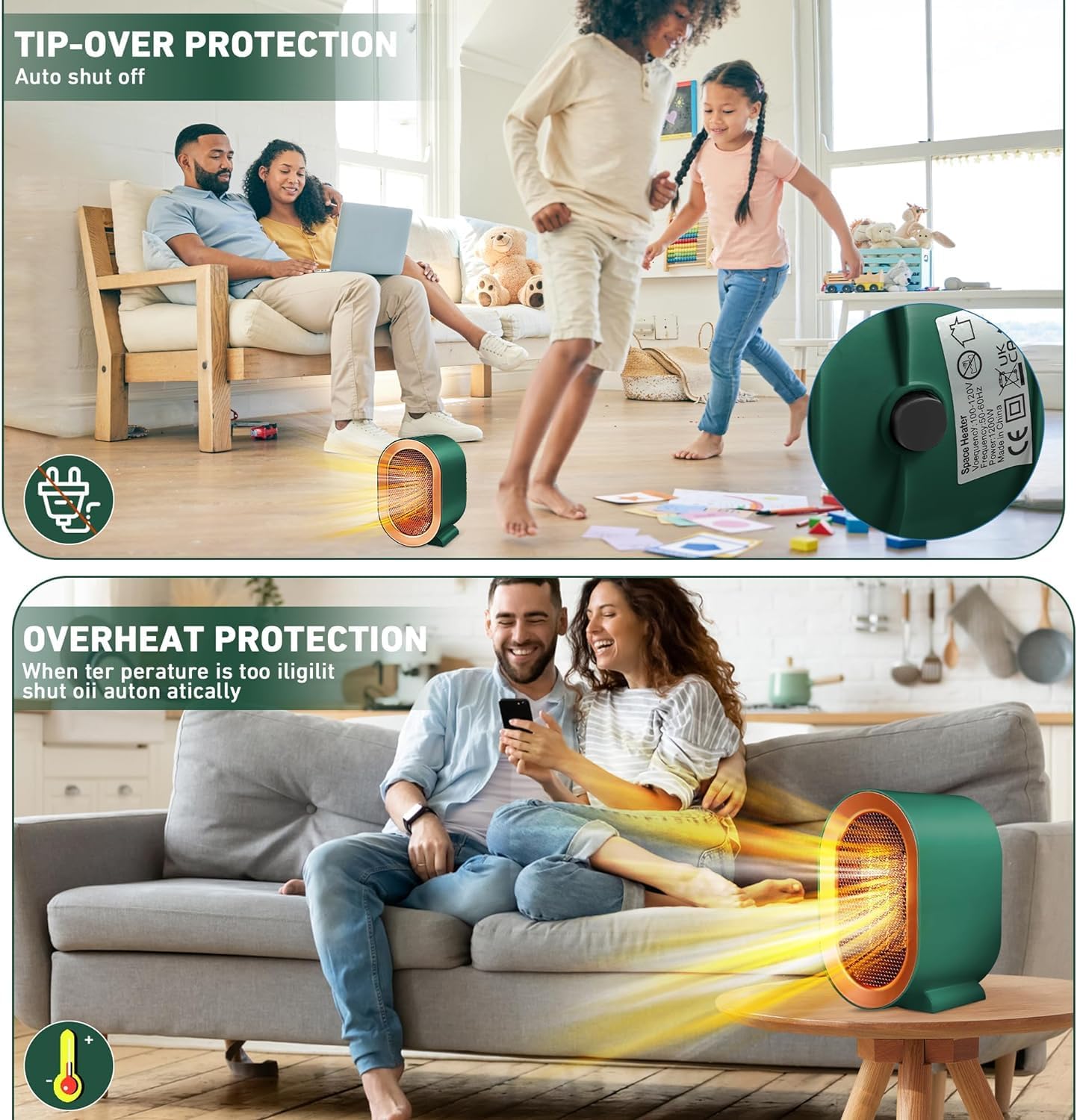 🔥【Comfortable and Low Noise】 This space heater adopts a convection air duct system, which can effectively reduce the noise of the heater and blow out soft warm air. The noise emitted by the indoor fan heater is only 35 decibels. It will not affect your work and life at all, allowing you and your family to enjoy a quiet, warm and comfortable night in the cold winter!