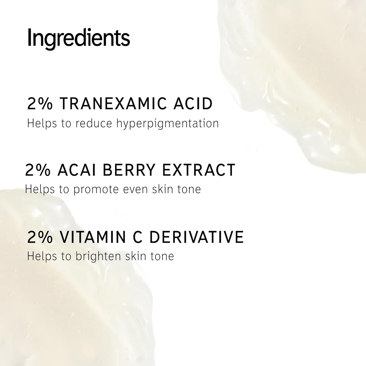 This overnight treatment targets hyperpigmentation, uneven patches and dark spots. It brightens your skin’s complexion, as well as aids the reduction of dark spots and uneven skin tone. Formulated with 2% Tranexamic Acid, 2% Acai Berry extract to promote even skin tone, as well as 2% skin brightening hero Vitamin C, it also boosts overall skin brightness and evens skin tone.