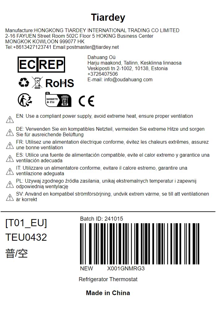 Tiardey 2pcs Refrigerator and freezer defrost/defrost thermostat Bimetallic temperature controller -7℃ – Square
