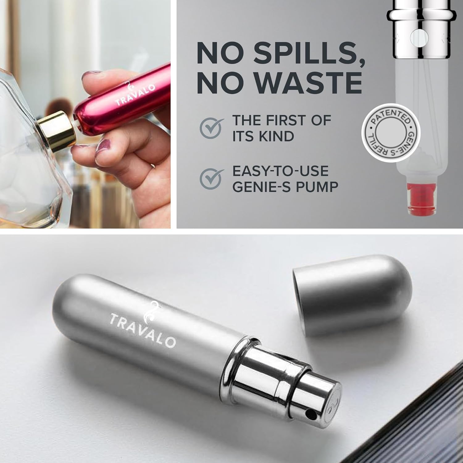 The Travalo Perfume Atomiser is an innovation that acts as a portable case for your favourite fragrance. Its patented easy fill system allows you to refill in seconds with a simple repeat pump action. The Travalo Atomiser holds up to 5ml of eau de toilette or eau de parfum, equating to approximately 65 sprays Compatible with most spray bottles, the Travalo Perfume Atomiser is made with aluminium and without glass, allowing it to be approved for carry-on baggage at most airports. Travalo makes it easy and convenient to have a fresh confidence boost anytime anywhere. To use: Remove the spray head from your perfume bottle. Place your Travalo upright on top of the nozzle peg of your perfume or aftershave and repeatedly pump it up and down to fill.