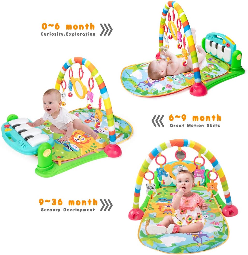 【Easy To Clean】The arch bridge and keyboard are removed easily, smooth surface is edgeless, floor mat can easily be folded up when it is taken outdoors or even for traveling. Baby can play around like lying, sitting and sprawling, so that the parents can enjoy the playful time with their babies. It also can be a smart choice as a Baby Shower, Christmas, or Birthday toy