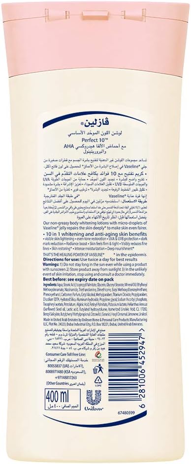 contains droplets of Vaseline jelly which helps restore skin from within, leaving it radiant and visibly more even-toned