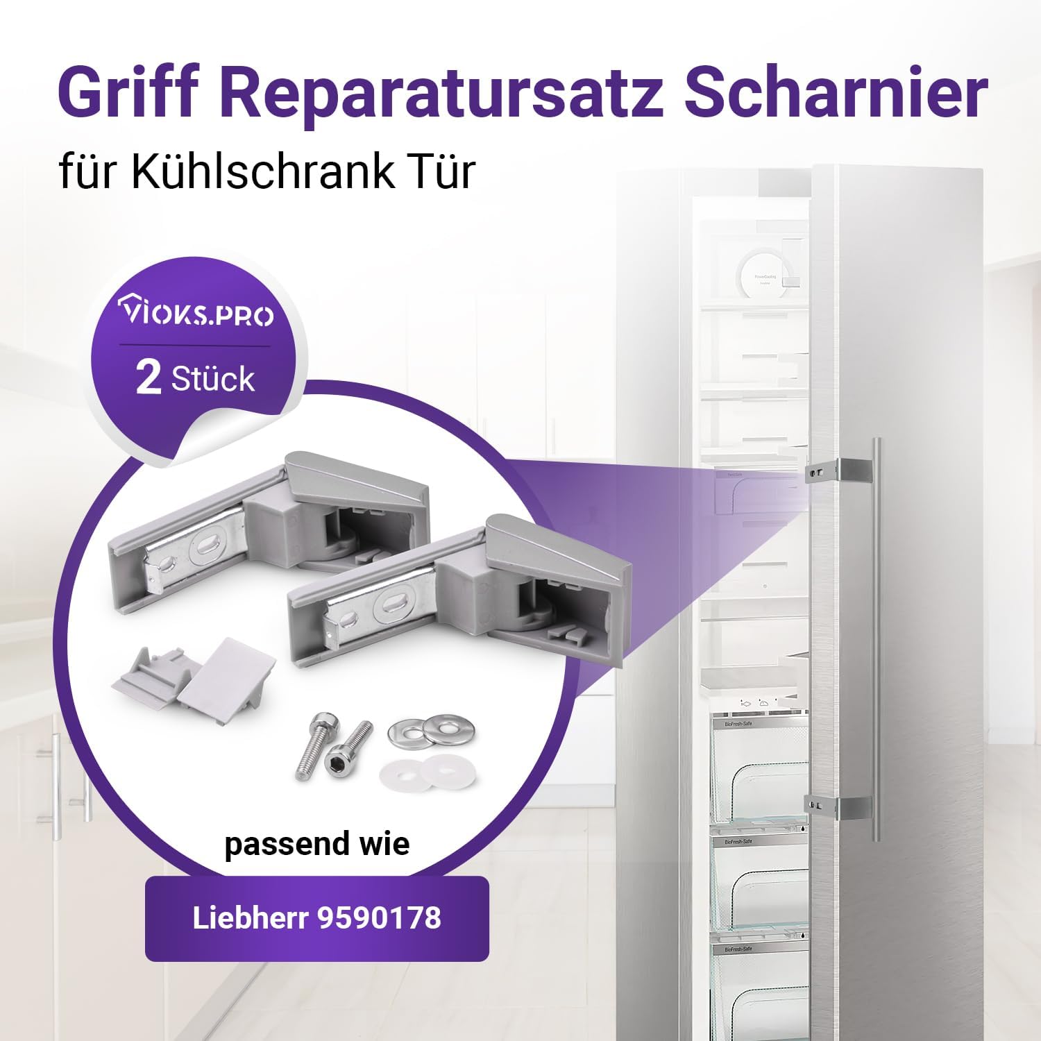 Suitable as: our Viоks.pro set for handle Liеbherr freezer / Liеbherr fridge door handle/handle from refrigerated freezer combination Liеbherr replaces the Liеbherr repair kit 9590178 and hinge Liеbherr 9590124