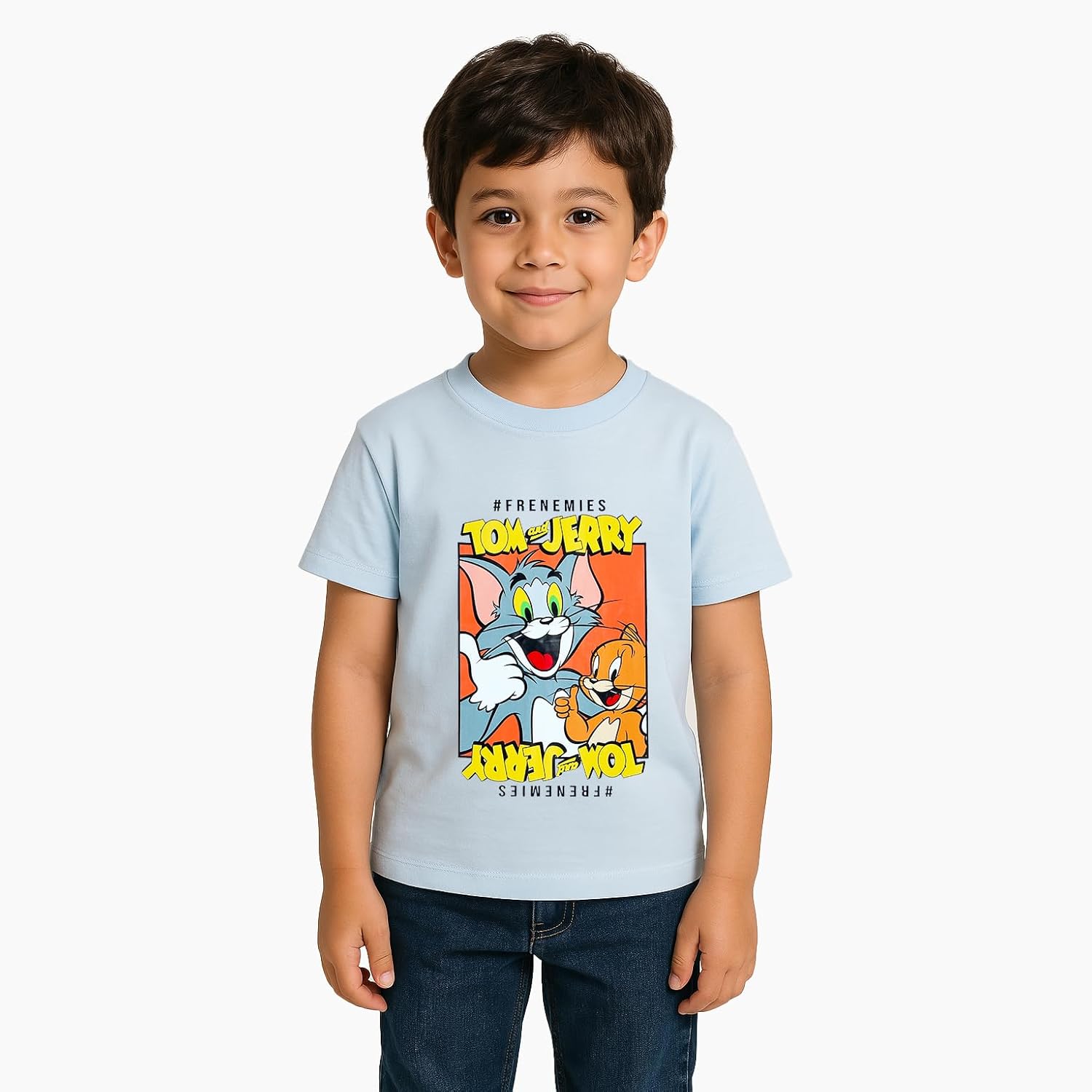 Let your little one enjoy the timeless fun of Tom & Jerry with this official Warner Bros. Tom & Jerry Kids’s Boy’s Short Sleeve T-Shirt. Featuring vibrant graphics of the iconic duo, this shirt is sure to bring a smile to any young fan’s face. Crafted from 100% cotton, this t-shirt offers a soft and comfortable feel that’s perfect for all-day wear. Whether they’re playing with friends or enjoying a day out, this t-shirt is as fun as it is comfy. With its classic crew neck and short sleeve design, it’s ideal for warm weather and casual days.