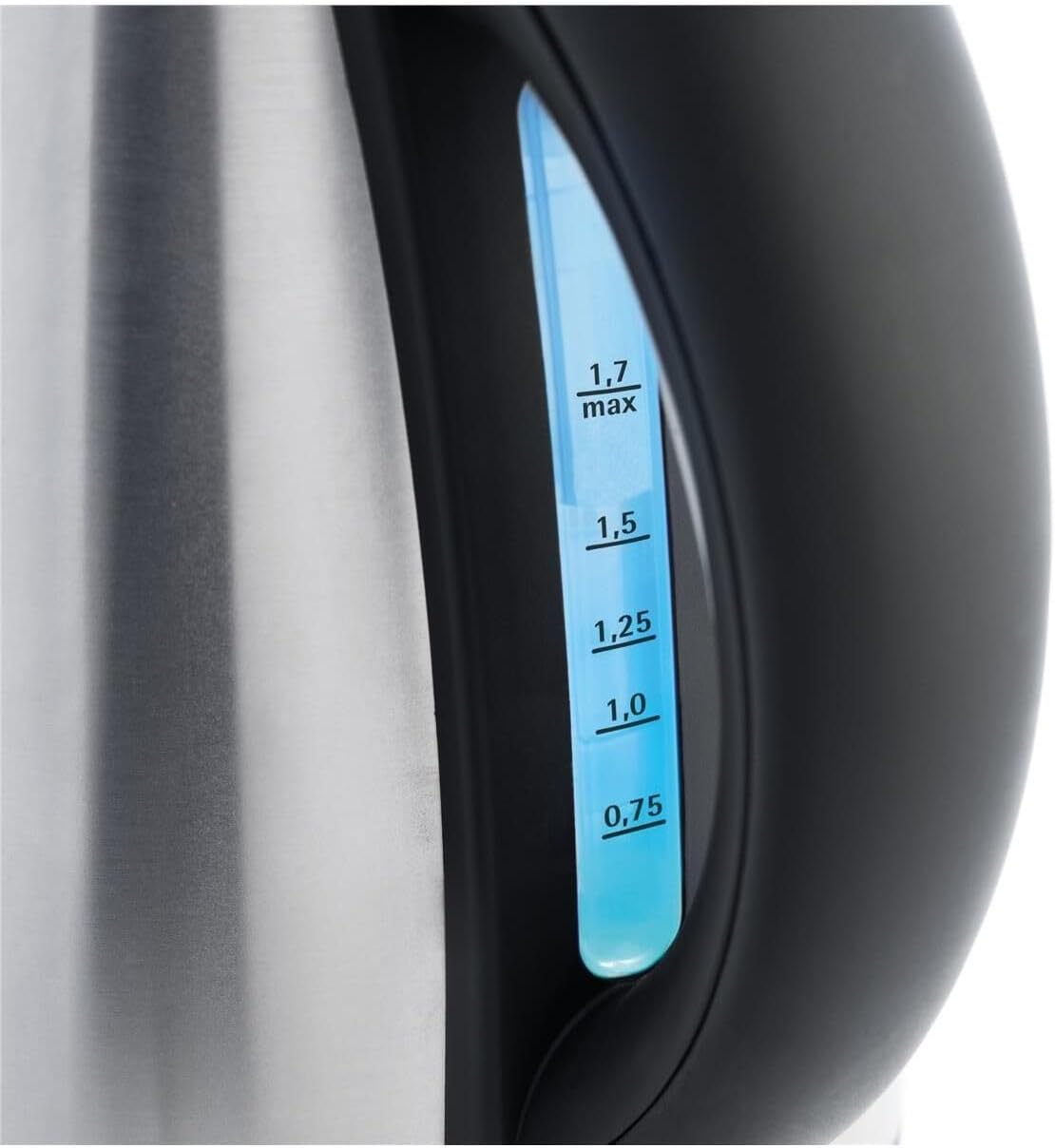 يضفي التصميم البسيط الخالد لمسة أنيقة على المطبخ. بناءً على احتياجاتك، توجد هذه الغلاية اللاسلكية بسعة 1.7 لتر أو 1.2 لتر. كلاهما مجهز بقوة 2400 واط ويسمح بتسخين مريح وسريع للمياه. يتم ضمان السلامة العالية من خلال الجري الجاف والحماية من الحرارة الزائدة، وإيقاف الغليان التلقائي وقفل الغطاء.