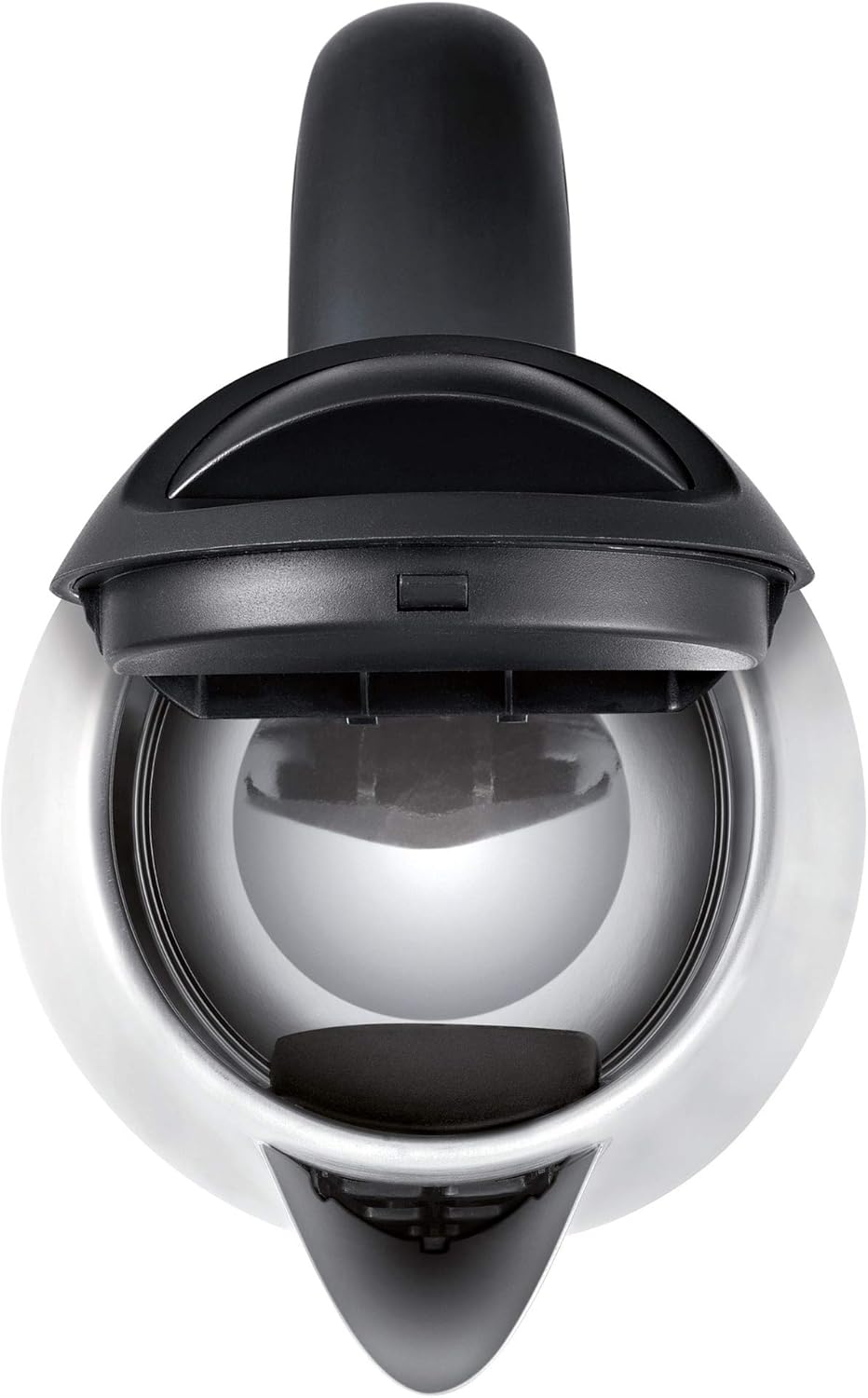 The Bueno Cromargan kettle delivers full power with its hidden stainless steel heating element and 2,400 watts, so you don’t have to wait long for 1.7 litres of hot water. Clever extras: illuminated, external water level indicator, removable, washable limescale water filter and a comfortable soft-touch handle. Practical: The cordless kettle with separate device base, which also hides the cable reel. Safe: thanks to dry running and overheating protection, automatic boiling stop and lid lock.