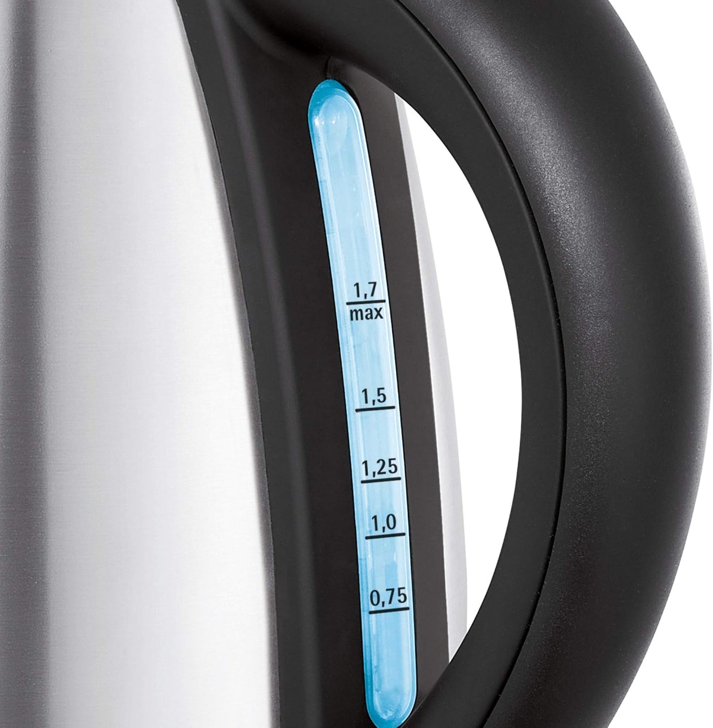 Contents: 1x stainless steel kettle made of matt Cromargan (21 x 25 x 16.5 cm, 2400 W), 1x device socket including cable reel – item number: 0413080011