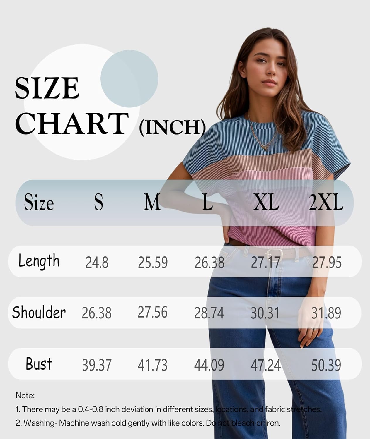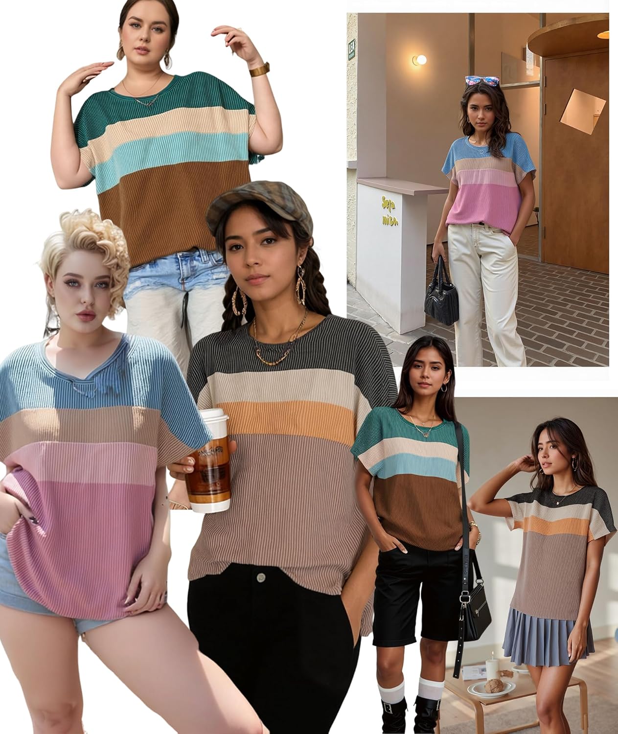 شراء Womens Fashion 2025 Color Block Short Sleeve Crewneck Knitted Casual Loose Pullover Shirts Tops اون لاين من امازون او نون وحراج Womens Fashion 2025 Color Block Short Sleeve Crewneck Knitted Casual Loose Pullover Shirts Tops