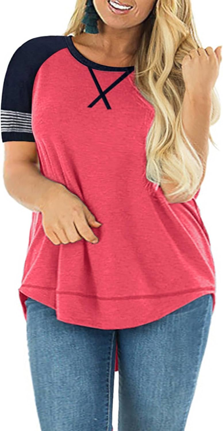 Womens Plus Size Tunic Tops Summer Crew Neck Striped Loose Tee Shirt Casual Short Sleeve