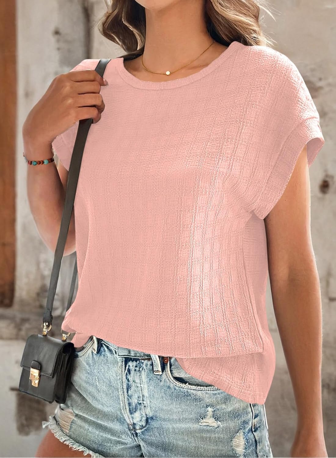 Womens Tee Tops Casual Batwing Short Sleeve Basic Solid Color V Neck T Shirts Blouse