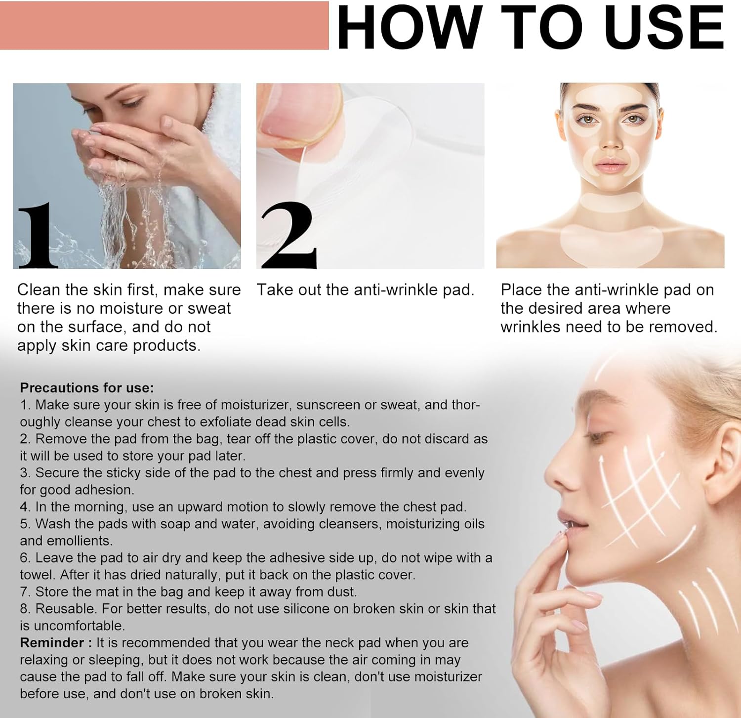 User-Friendly Application: Transform your skincare routine with our Silicone Anti-Wrinkle Sticker. Simply apply the patch to your eyes, chest, or face for a rejuvenating effect. Easy to clean and reuse, just wash the plasters with neutral soap and air dry after each use for lasting benefits.