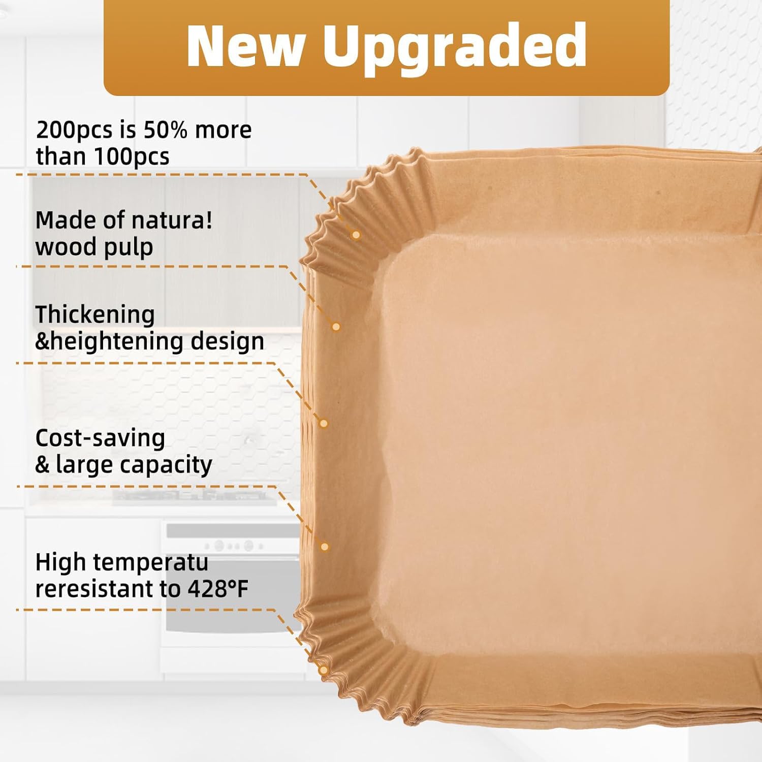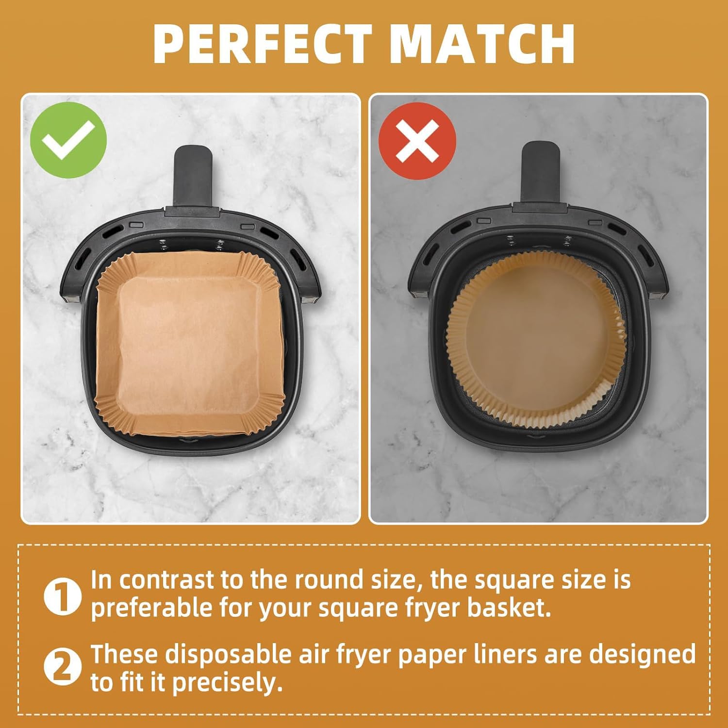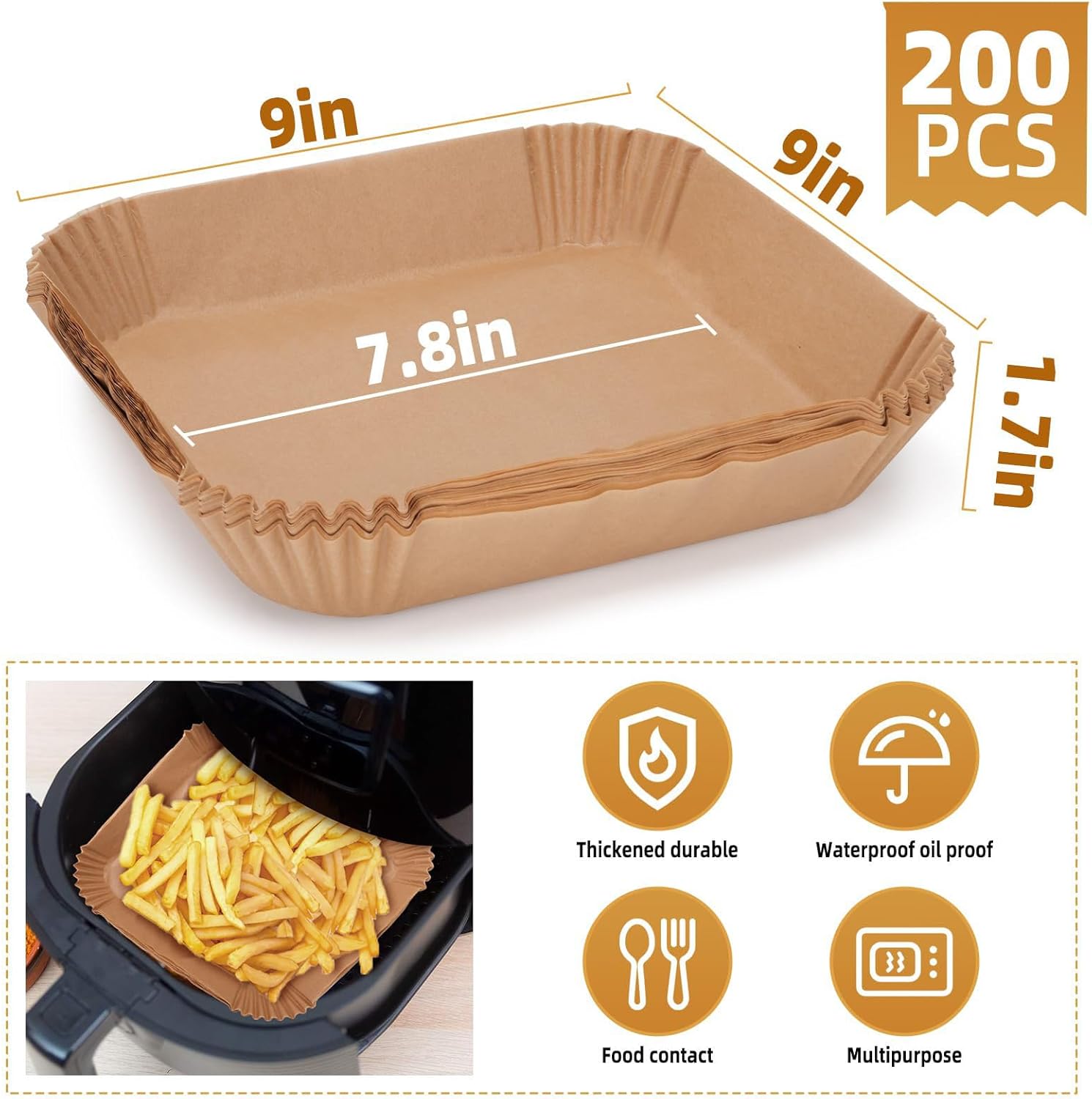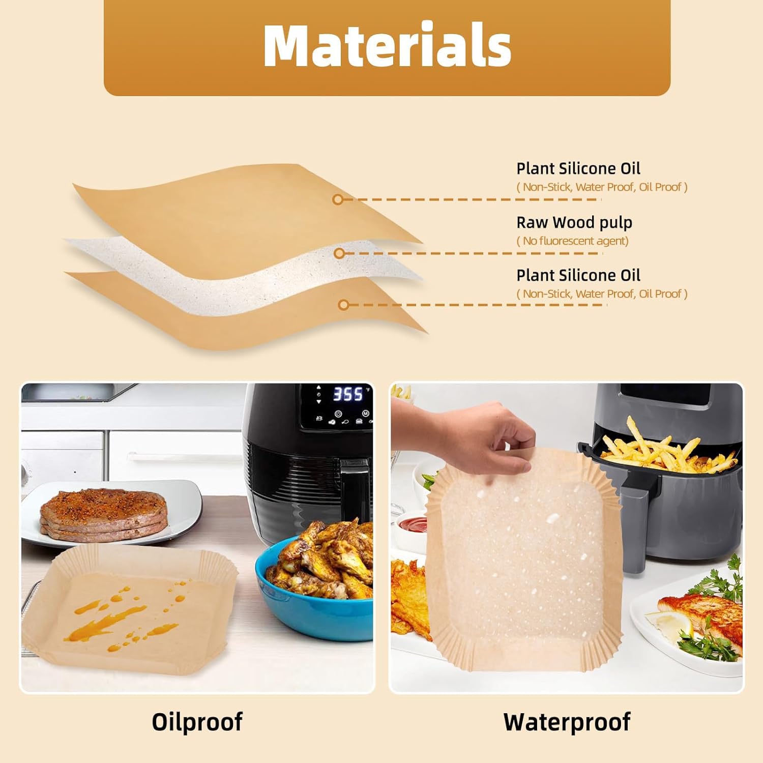 🍗【Heat-Resistant】: These 9-inch square baking paper liners for Air Fryer are heat-resistant, withstanding temperatures up to 220°C (428°F). They ensure even heat distribution, allowing food to cook evenly and achieve the desired golden brown color.