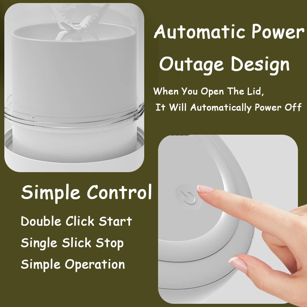 → Smart Operation: Double-click button + tilt 45° to blend evenly (auto-stop protection).