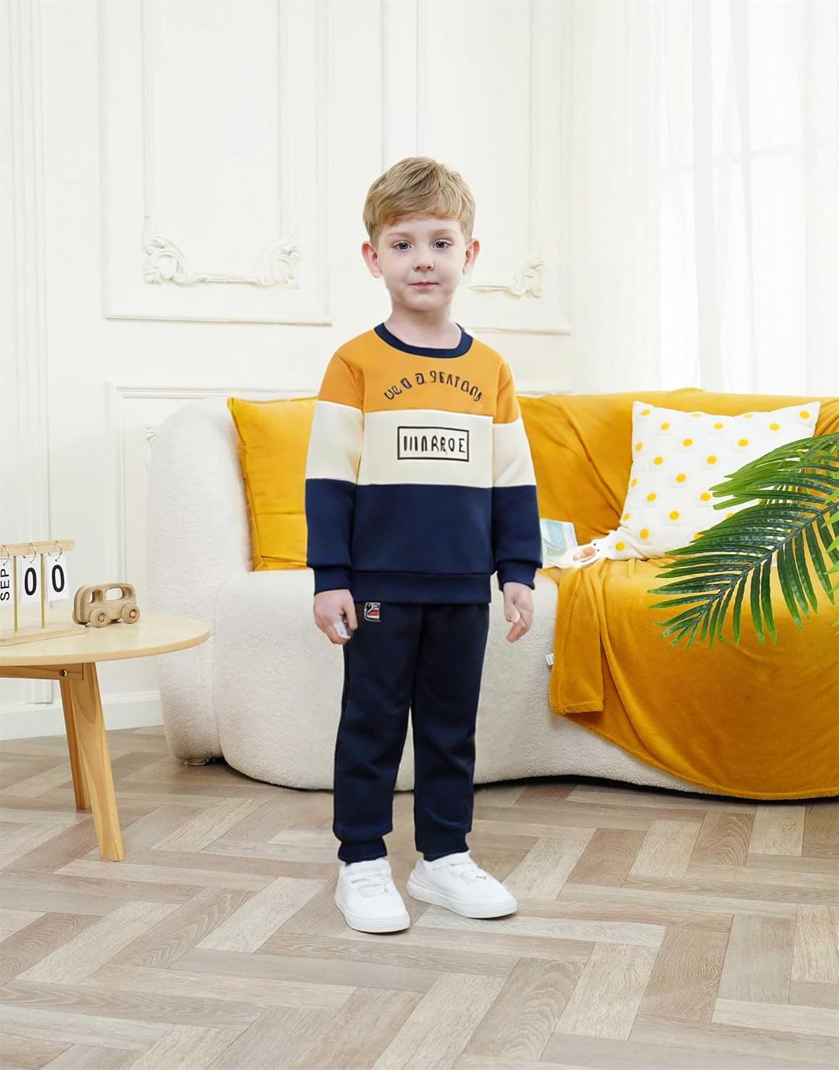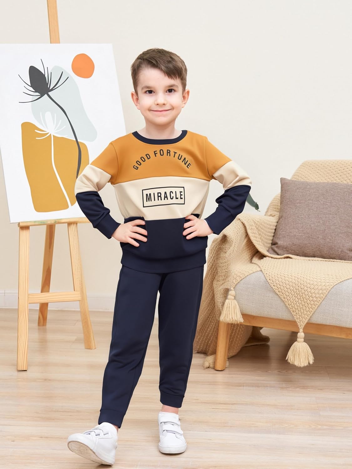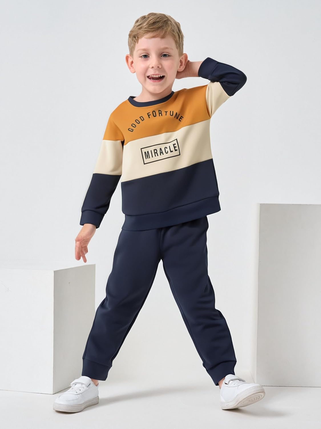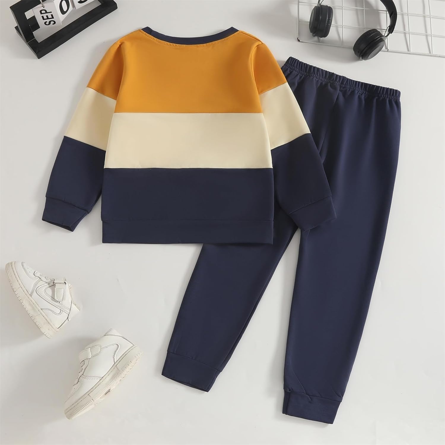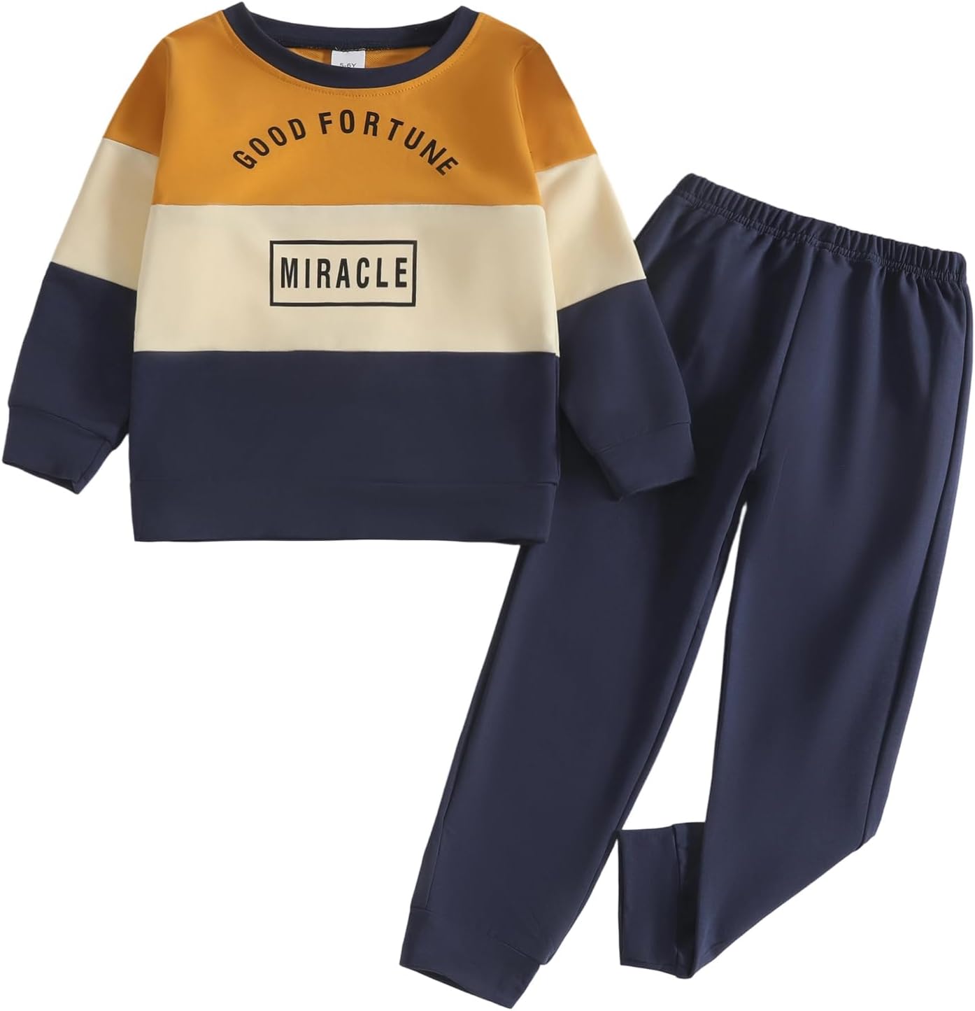 Toddler Kid Boy Clothe Colorblock Letter Fall Winter 2PC Outfit Set