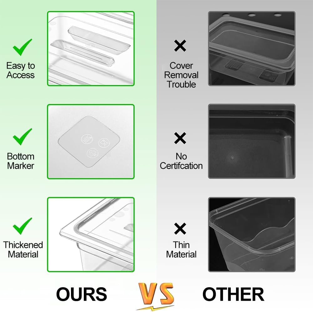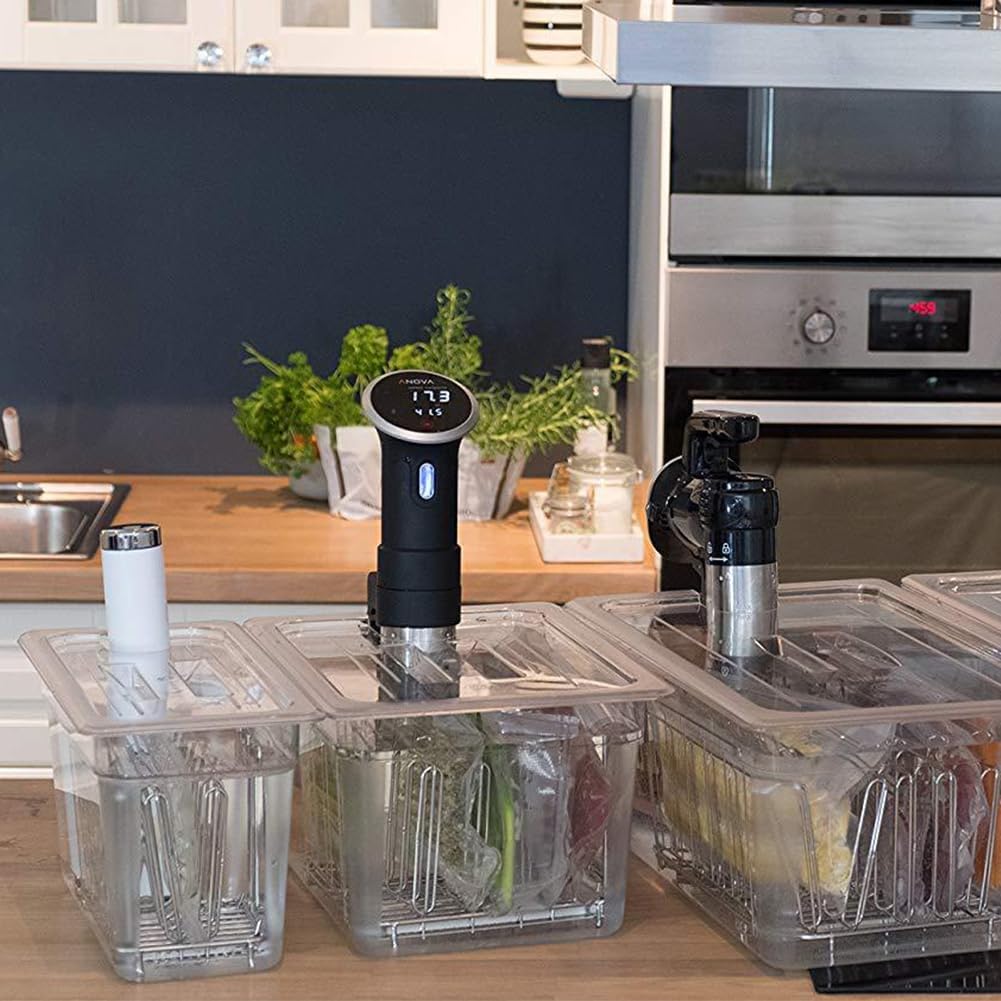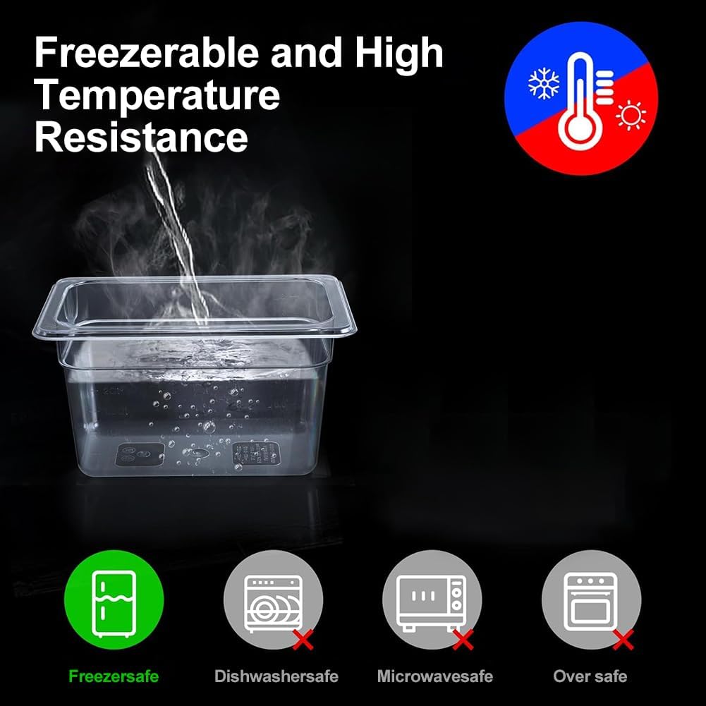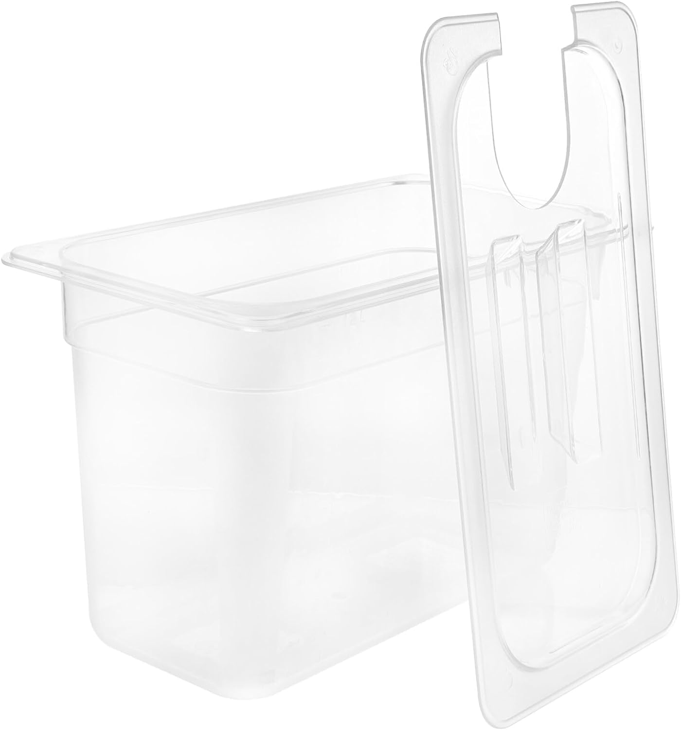 [The most suitable container for sous vide] This container/lid is made from BPA free Polycarbonate, it’s resists heat very well which help keep even water temperature and prevent water evaporation. They are transparent (so you know what’s inside) and surprisingly lightweight.