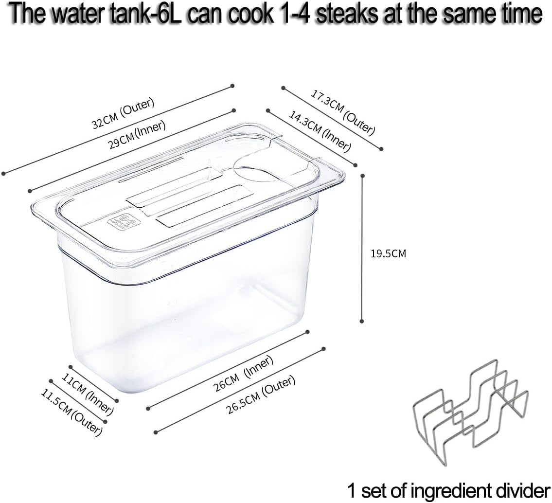[Capacity] 6L container/rack/lid set can hold 1-4 steaks or chicken breasts as well as large cuts of meat such as whole brisket. Perfect for home, professionals.