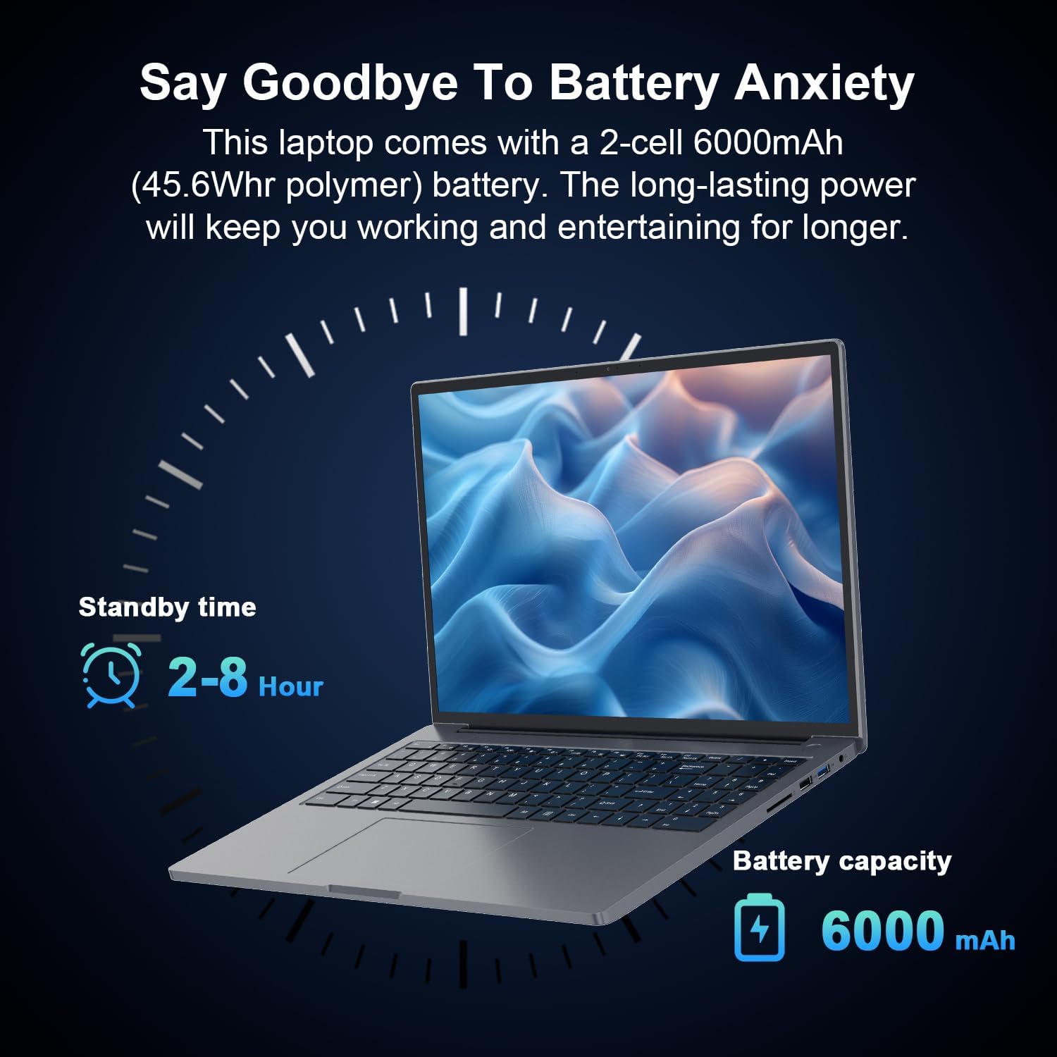 Ultra Long Battery Life:Equipped with a 36Wh high-capacity lithium-ion battery and advanced power management features, it can be fully charged in just 2.5-3 hours, meaning you can take your laptop with you wherever you go, making it perfect for travelling and on-the-go use.