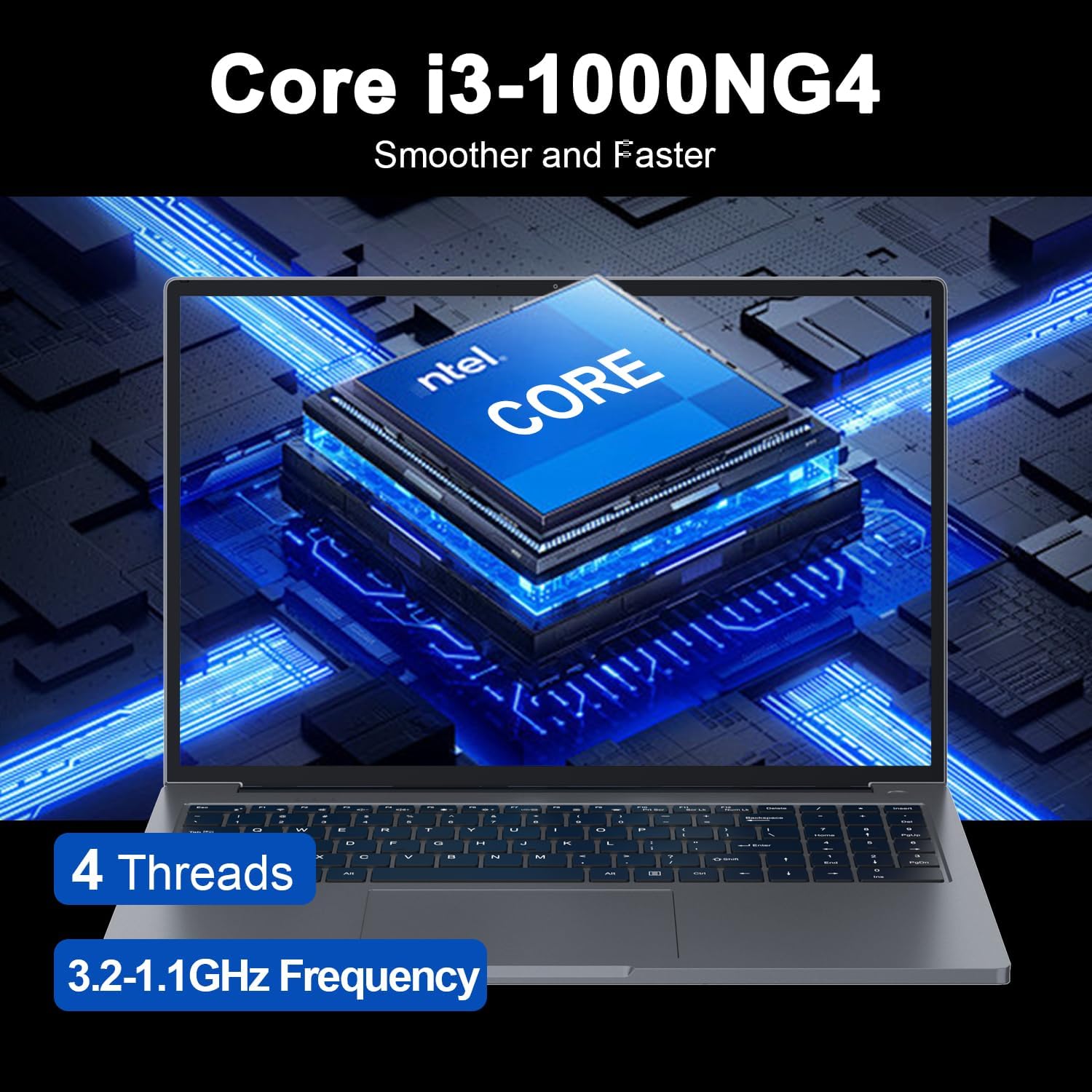 Laptop Computer, i3 Quad Core Processor (Up to 3.2GHz), 16″FHD IPS,12GB LPDDR4+512GB SSD, WiFi&BT/USB3.2,Laptop for Work/Gaming,Metallic Gray
